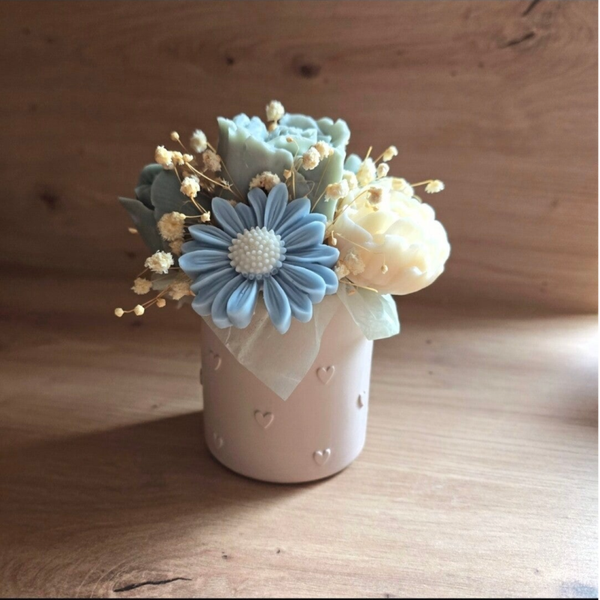 Einzigartig, liebevoll und mit viel Sorgfalt gefertigt: Dieser handgemachte Blumenstrauß besteht aus detailreichen Kerzen in Blumenform. Jede „Blume“ ist ein kleines Kunstwerk und macht deinen Strauß zu einem besonderen Hingucker – ideal als Geschenk zum Geburtstag, Muttertag, zur Hochzeit, Valentinstag oder einfach als dekorativer Akzent für dein Zuhause.